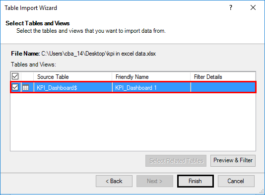 Step 9: Click the Finish button once the data table is loaded into PowerPivot.