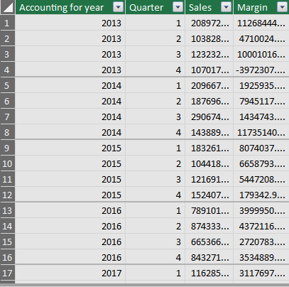 Rows: Accounting Date Year & Quarter