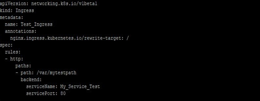 - Further Kubernetes Ingress needs apiVersion, kind, and metadata fields in the resource file. So you should know these. Along with these fields, if the host is defined, then rules will apply to that target, if no host is defined, then rules will be applied to all inbound HTTP (or HTTPS) traffic. Also, the field path (/var/mytestpath in above example) has a backend defined with a Service Name and Service Port. Both host and path fields should match the content of a request in web traffic, before the Load Balancer (if any present) forwards traffic to the concerned Service.