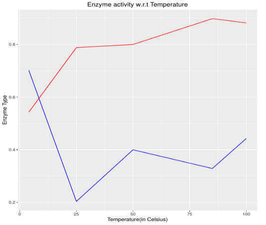 labs(title = "Enzyme activity w.r.t Temperature", x = "Temperature(in Celsius)", y = "Enzyme Type")