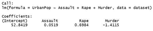 >Multiple_Linear_Relationship = lm(UrbanPop~ Assault+Rape+Murder , data=dataset)