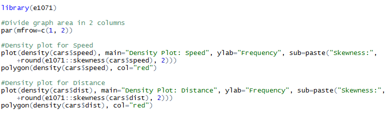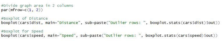 Similarly, to check the statistics checkpoints of the dataset, we can use code Summary(cars). This Code provides the mean, median, range of the dataset in a go, which the researcher can use while dealing with the problem.