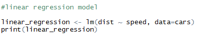 This is the core component of the analysis; earlier, we were just trying and testing things whether the dataset we have is logical enough to run such analysis or not. The function we are planning to use is lm(). This function contains two elements which are Formula and Data. Before assigning that which variable is dependent or independent, we have to be very sure about that because our whole formula depends on that.