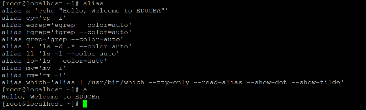 We hope that this EDUCBA information on “Linux Alias Command” was beneficial to you. You can view EDUCBA’s recommended articles for more information.