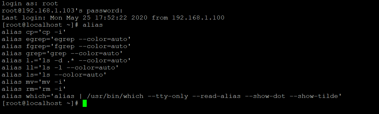 Explanation: As discussed earlier, we can use the alias to define our own command or command shortcut in the Linux ecosystem. As per the above command, we can list down the number of aliases available in the system. As per the below output (refer Screenshot 1 (a)), these are the default alias available in the operating system. We have created a temporary alias in the system (refer Screenshot 1 (b)). As updated earlier, the alias is temporary if we will not hard code it. After rebooting the server or session close then the alias entry will not present in the system (refer Screenshot 1 (c)).