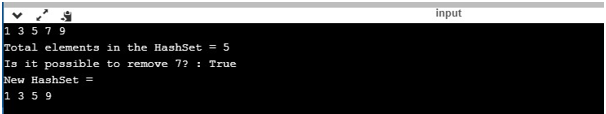 // Inserting elements in HashSet for (int i = 0; i < 5; i++) { odd.Add(2 * i + 1);