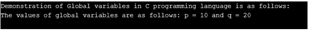 printf("Demonstration of Global variables in C programming language is as follows:");