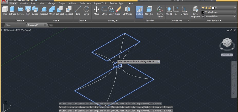 Step 12: Now go to the ‘Create’ menu of the Home tab and click on the icon of the Loft command.