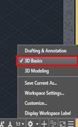 Step 2: Now go to the bottom right end of this software and make the ‘3D Basics’ option ‘On’ from the list of workspace settings.