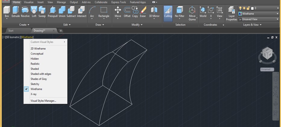 Step 17: Now click on the 2d Wireframe option and select the Shaded option from the list for seeing the Shaded view of this object like this.