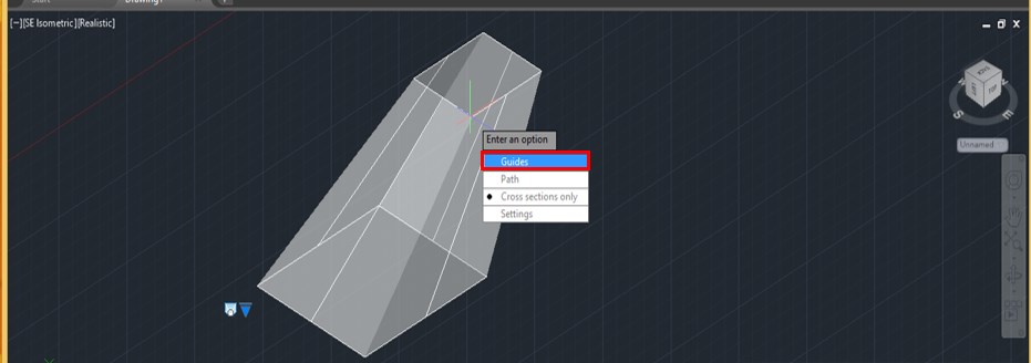 Step 23: Now again, take loft command and select bottom rectangle then upper rectangle, then press enter button of the keyboard. Now click on the Guides option of the opened list.