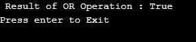 Console.WriteLine(" Result of OR Operation : " + logicalOR);