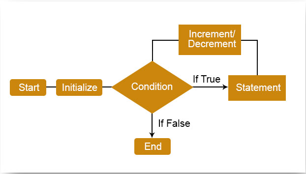 All the 3 parameters (i.e. initialize, condition and increment/decrement) stays in one single statement in FOR loop. Initialization means to provide the initial values of the Variable. The condition means the value we want to check in the program.Increment/Decrement means what you want to have in the loop; the value will either be increased or decreased accordingly. The body of the loops starts with the curly brackets and ends with curly brackets (}) and contains the statements which will be executed using the loop.