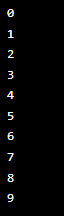 The output of this code, which prints the numbers 0 to 4 on separate lines, is as follows: