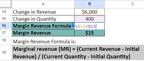 Thus, according to the example, the marginal revenue will result from dividing $15 by 3, which equals $5.