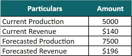 Forecasted Revenue from Production = 7500 * 196 = $14,70,000