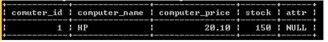 insert into computer1 (computer_name, computer_price, stock, attr) values ("HP",20.1, 150, null);