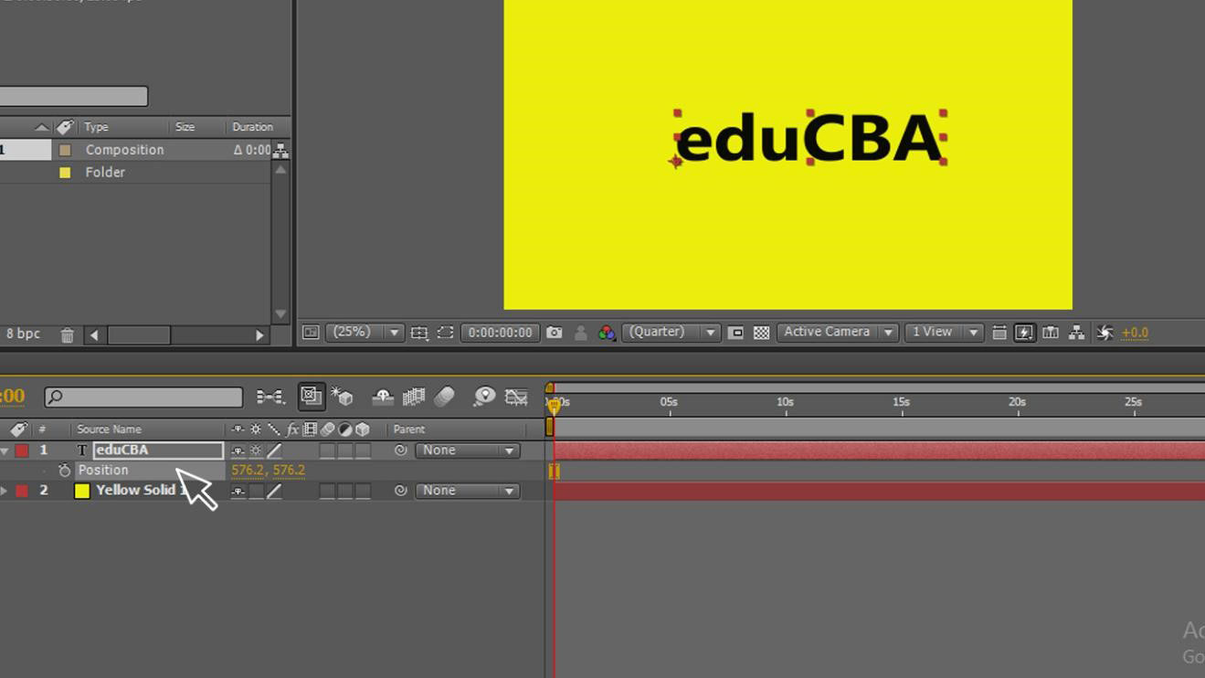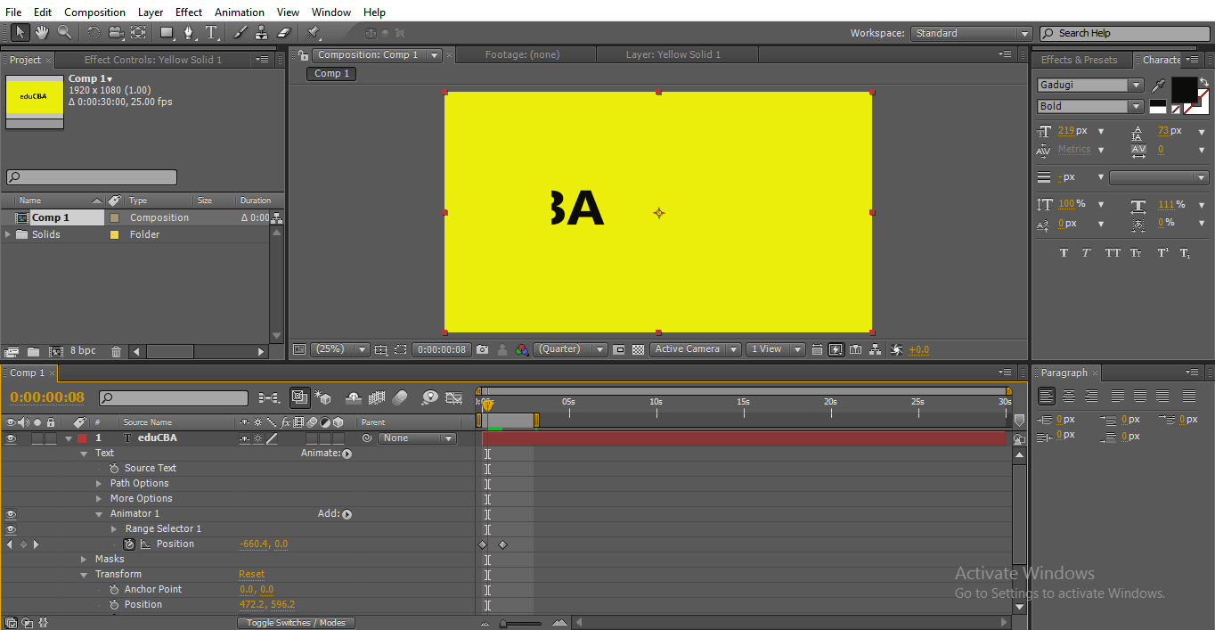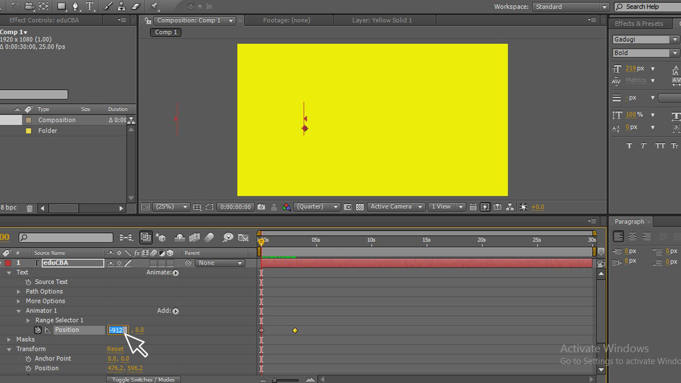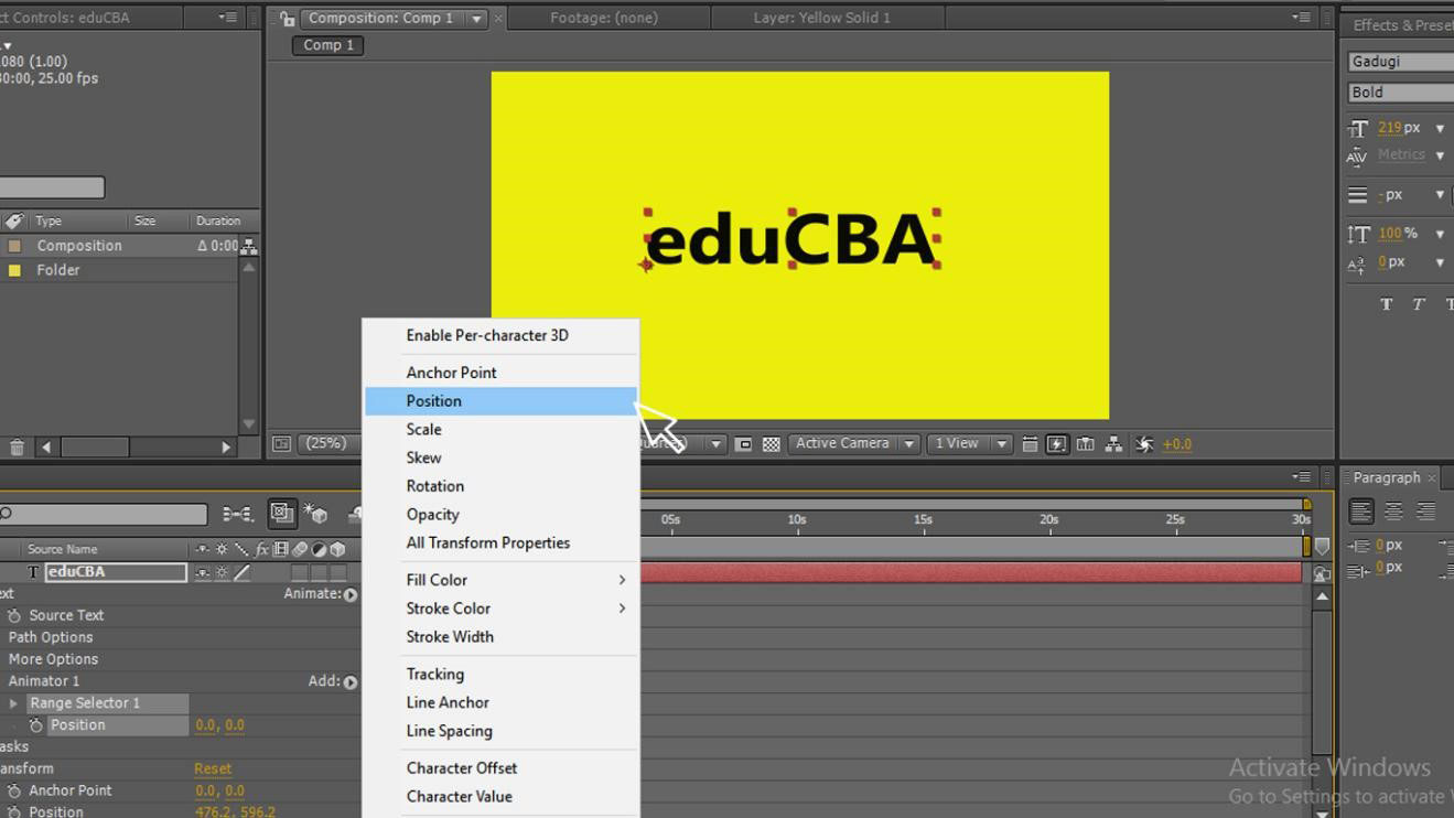 Step 7: If we go to the text and by selecting the position, we can animate the text.