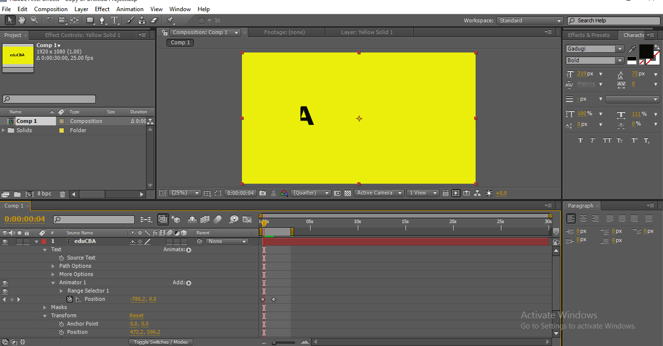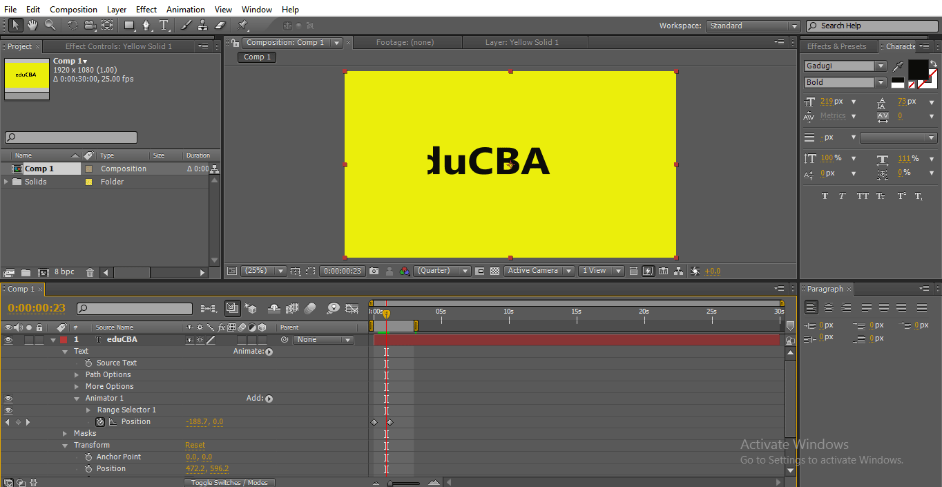 Step 8: In this case, text animates in the screen from one side to another, but in masking, we animate within the path, let’s see how it works in the next step.
