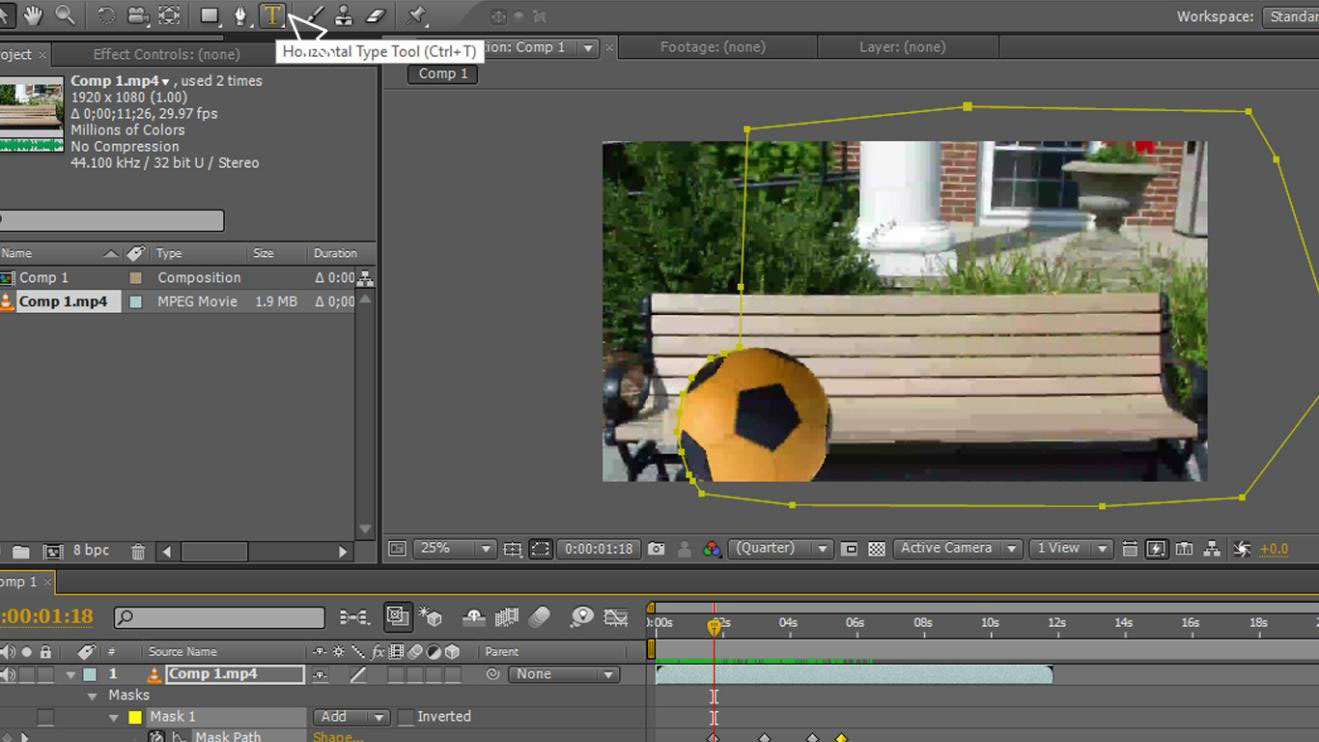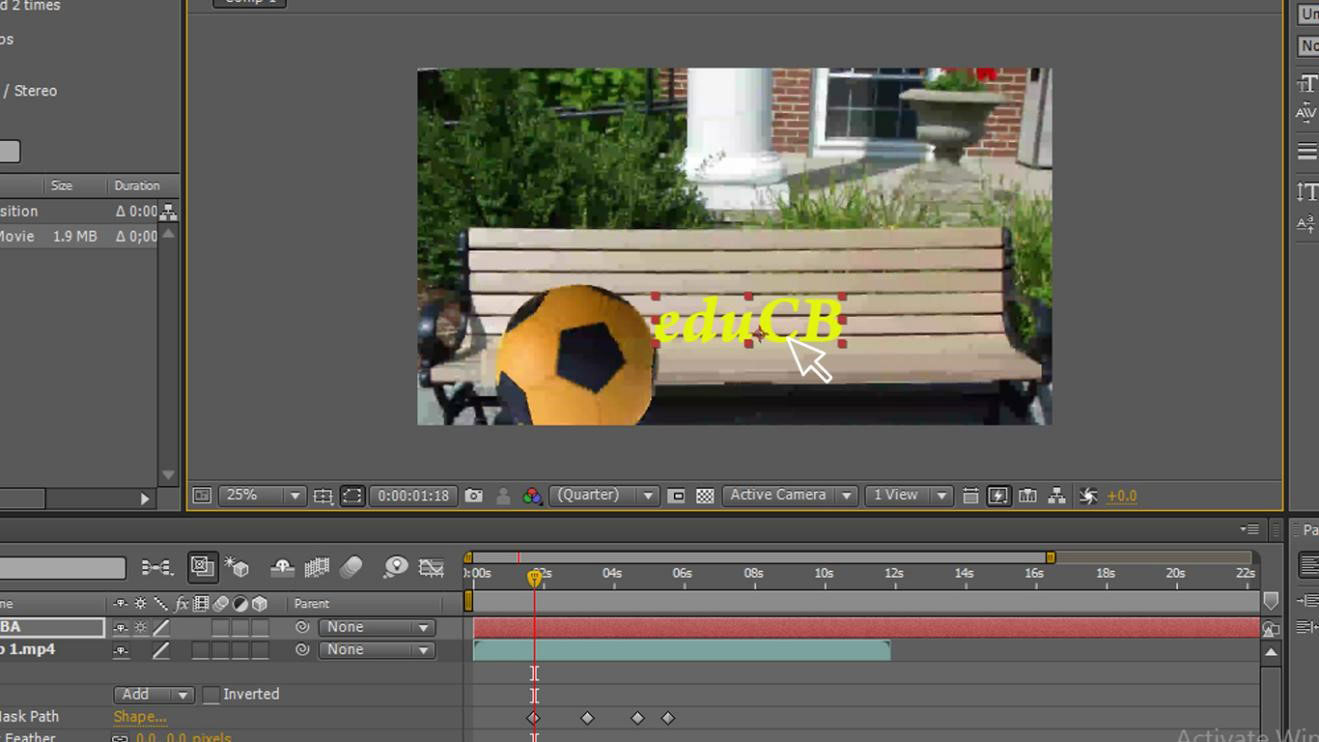We finished the drawing shape, and we created the path and also animated the path; it’s just a basic process now we are moving to the next step of masking; let us try to mask a text with the ball now.