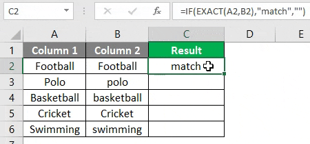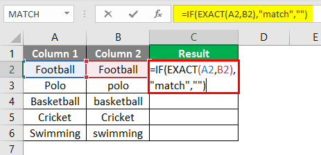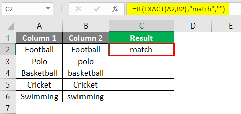 - This is a case sensitive thing. The same data in different cases will lead to an unmatched result. The exact function is used to compare case sensitive data and get a correct result.