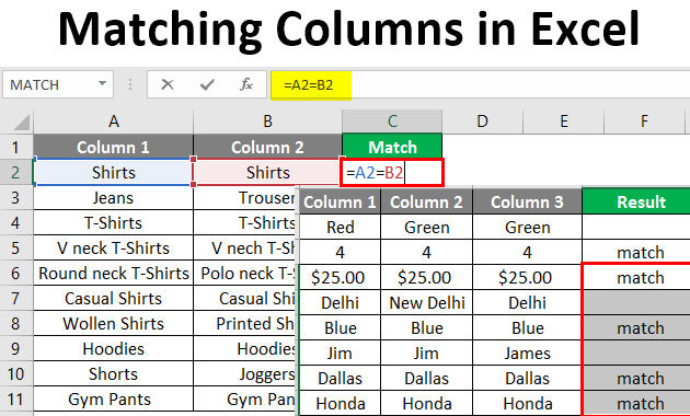 This is a guide to Matching Columns in Excel. Here we discuss How to use Matching Columns in Excel, practical examples, and a downloadable Excel template. You can also go through our other suggested articles –