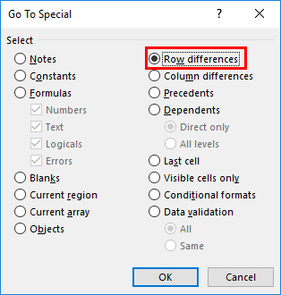 Press Enter Key. You will now see the unmatched cells highlighted.
