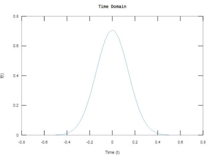 The output window displays the Gaussian signal formed as function ‘f’ in time domain and np-point FFT is computed using fft() resulting in frequency domain signal ‘PF’.