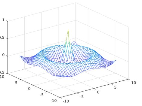 | mesh(X,Y,Z) | It is used to generate 3D surface plot of which height is determined by the values in the input matrix ‘Z’ and the x-y plane is set by X and Y. |