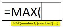 A dialog box appears where arguments for MAX Function need to be filled or entered i.e. =MAX(number1, [number2], … )