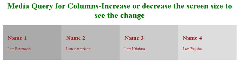 <h1>Media Query for Columns-Increase or decrease the screen size to see the change</h1>