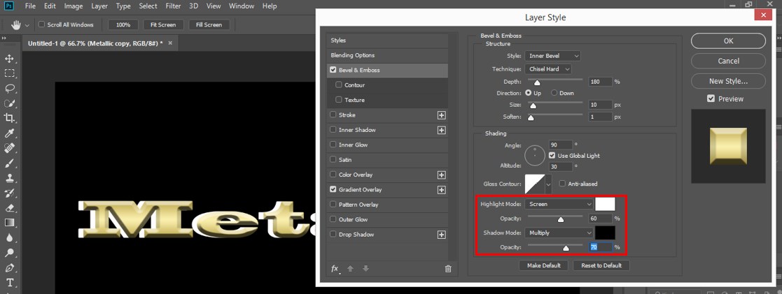 Metallic-effect in Photoshop is the most popular tool among designers for creating text effects. A metallic effect can be used to make your object look more effective. The types of Metallic effects can make your text look more realistic and can give it a natural look.