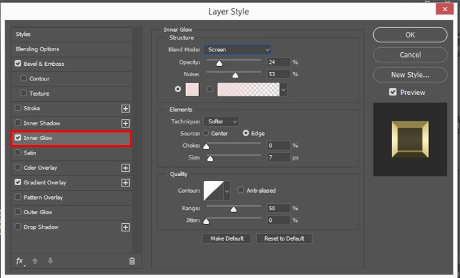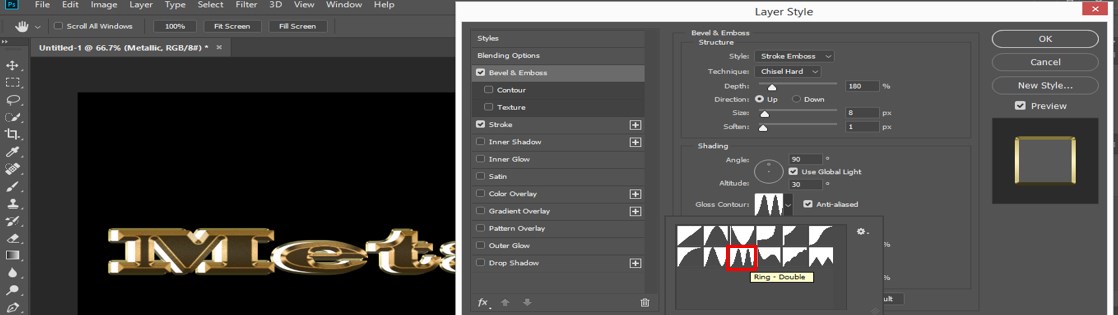 Step 23: Take the ‘Ring- Double’ option in the ‘Anti-aliased’ option to enhance the smoothness of the gold effect.