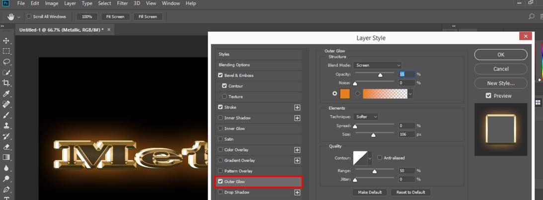 Let us move toward the steps of applying the Metallic Effect to your text in an exciting manner: