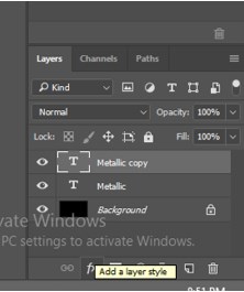 Step 6: Go to the layer section of this software, which is on the right side of the working area, and make duplicate layers of this text layer. To duplicate this layer, select this text layer and press the Ctrl + J button from the keyboard. A duplicate layer will be generated, which is named Metallic Copy. You can rename it according to your choice of name.