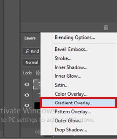 Step 8: A drop-down list will open. Choose the ‘Gradient Overlay’ style from here.