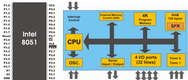 This image of Intel 8051 describes the details of the above-mentioned architecture points