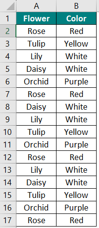 Suppose you have two columns, “Flower” and “Color,” and want to find all the mode values in the data and the number of times they appear. Let us use the pivot table to find the mode values.