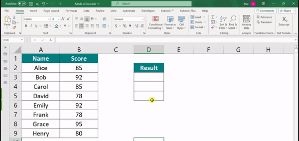 You can also use the MODE function in Excel using Ribbon. Let us use the same example given above and try to find the mode value using the Excel ribbon. However, we made a small change. The number for Grace is now 80.