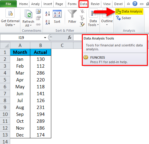 Moving Average is one of the many Data Analysis tools for Excel. We do not get to see this option in Excel by default. Even though it is an in-built tool, it is not readily available to use and experience. We need to unleash this tool. If your Excel is not showing this Data Analysis Toolpak, follow our previous articles to unhide this tool.