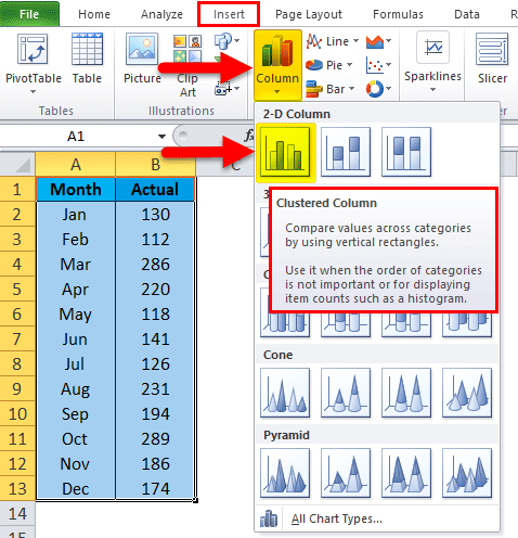 Step 4: Select the sales data from B2 to B13 for Input Range. We have not selected the heading, so leave Labels in the First Row check box.