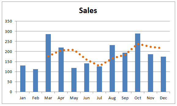 Now we understand the concept of moving averages. We can create a moving average chart without calculating the moving averages.