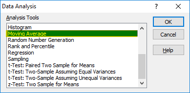 Step 3: It will open a Data Analysis dialog box. Scroll down and select the Moving Average option and click on OK.