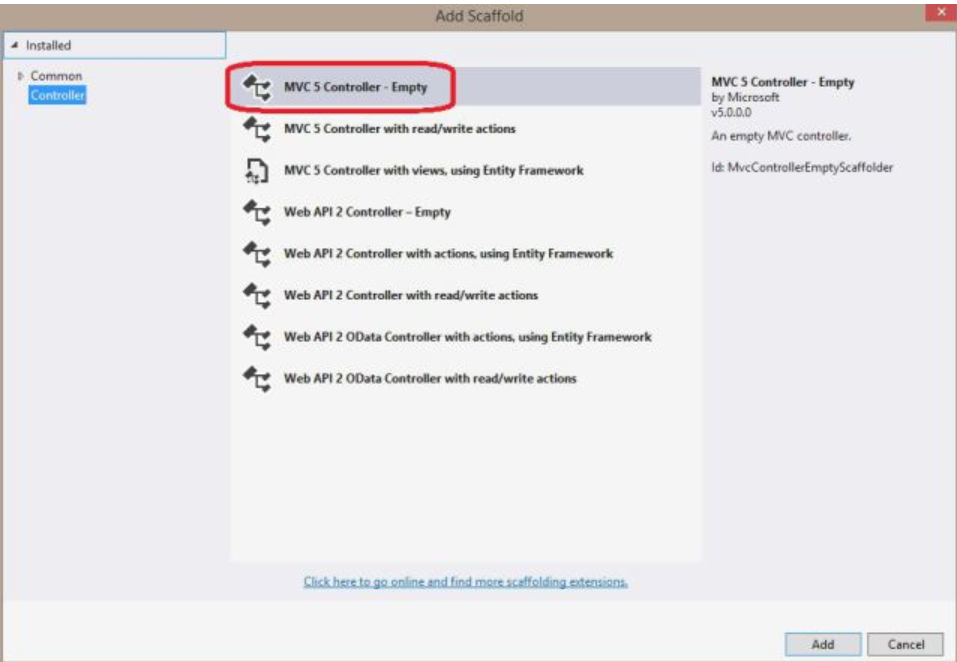 The application is created now, and we are having a basic MVC structure in the application. This contains 3 folders, namely Model, View, and Controller. We need to add a controller now. Right-click on a controller and add a controller.