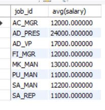 It will show the average salary according to each job id where the average salary will be greater than 12000