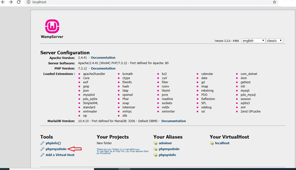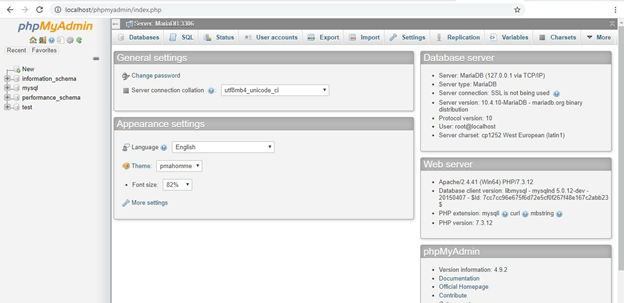 2. You will find the PHPmyadmin option on the localhost homepage for the MySQL server. To access the database, use “root” as the username and leave the password field blank if it has not been set. Once you have access, you can run SQL query statements.