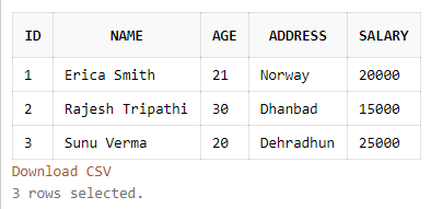 This is the output in which we write the SQL query in the editor and click on the Go button to run the command: