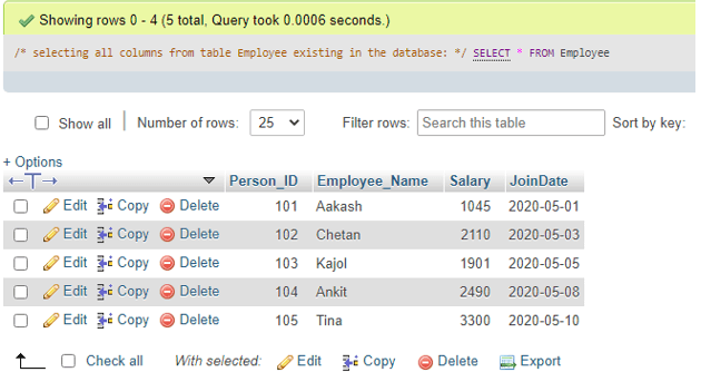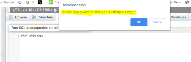 For example, we will create a table named ‘Emp’ with some fields and similar data types that are valid in MySQL and, respectively, a database named ‘EmpDB’ in MySQL server using the queries below: