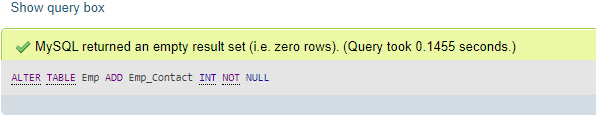ALTER TABLE Emp ADD Emp_Contact INT NOT NULL;