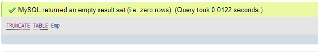 The syntax of the TRUNCATE command is identical to the DROP statement as follows: